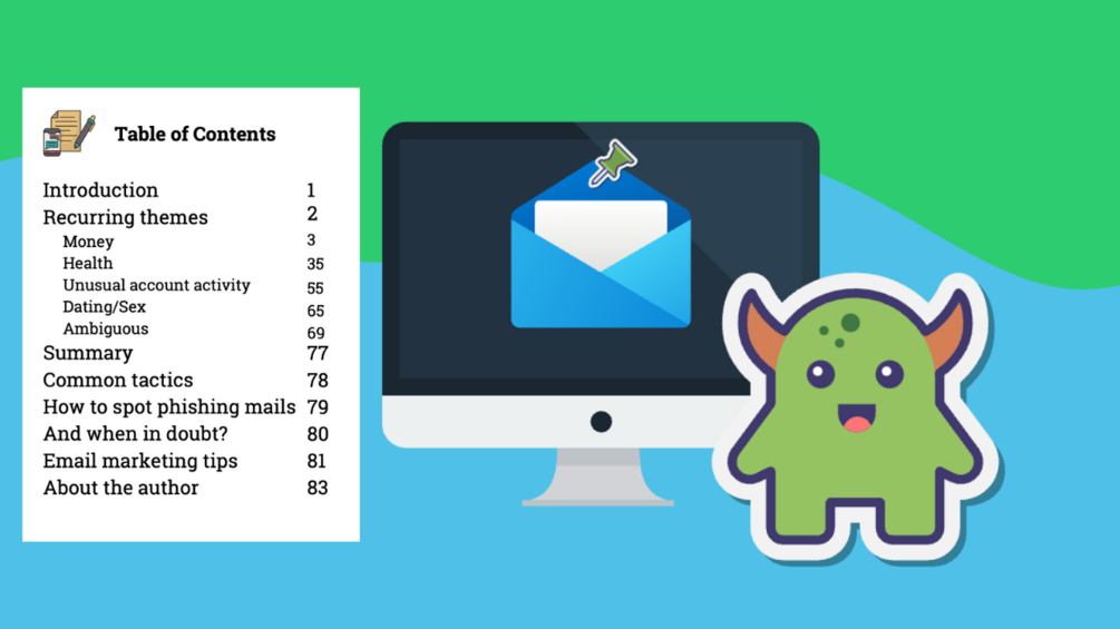 FREE 83-page PDF 105 Phishing Email Examples Ebooklet with Sender Names + Email Addresses, Subject Lines & Preview Texts Dissected